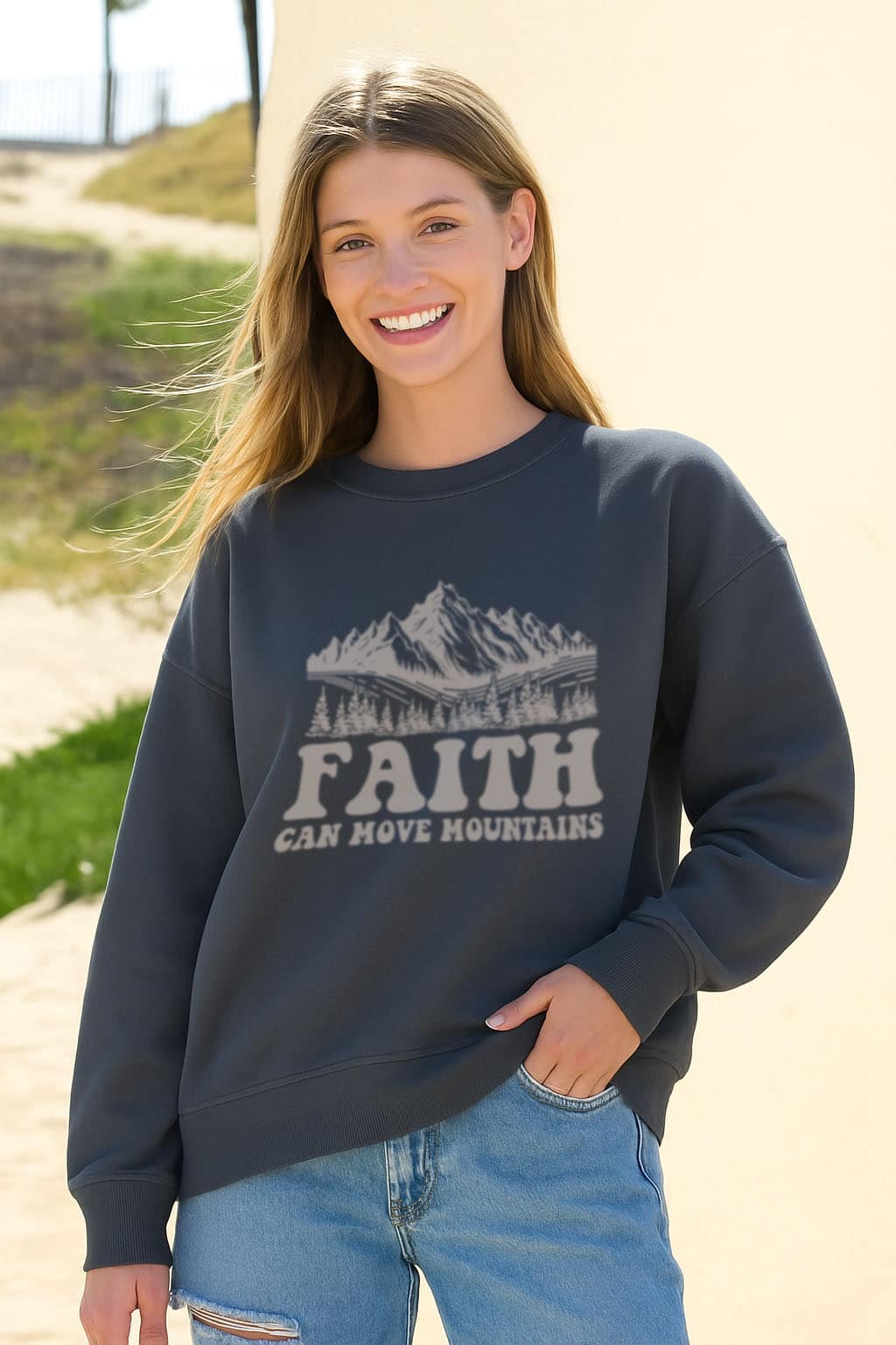 Inspired by Matthew 17:20, the Faith Can Move Mountains ComfortFit Crewneck is a bold reminder that even the smallest belief in God’s power can overcome the greatest obstacles. Featuring a striking mountain design, this crewneck encourages you to wear your faith boldly and confidently, declaring that through Christ, nothing is impossible.