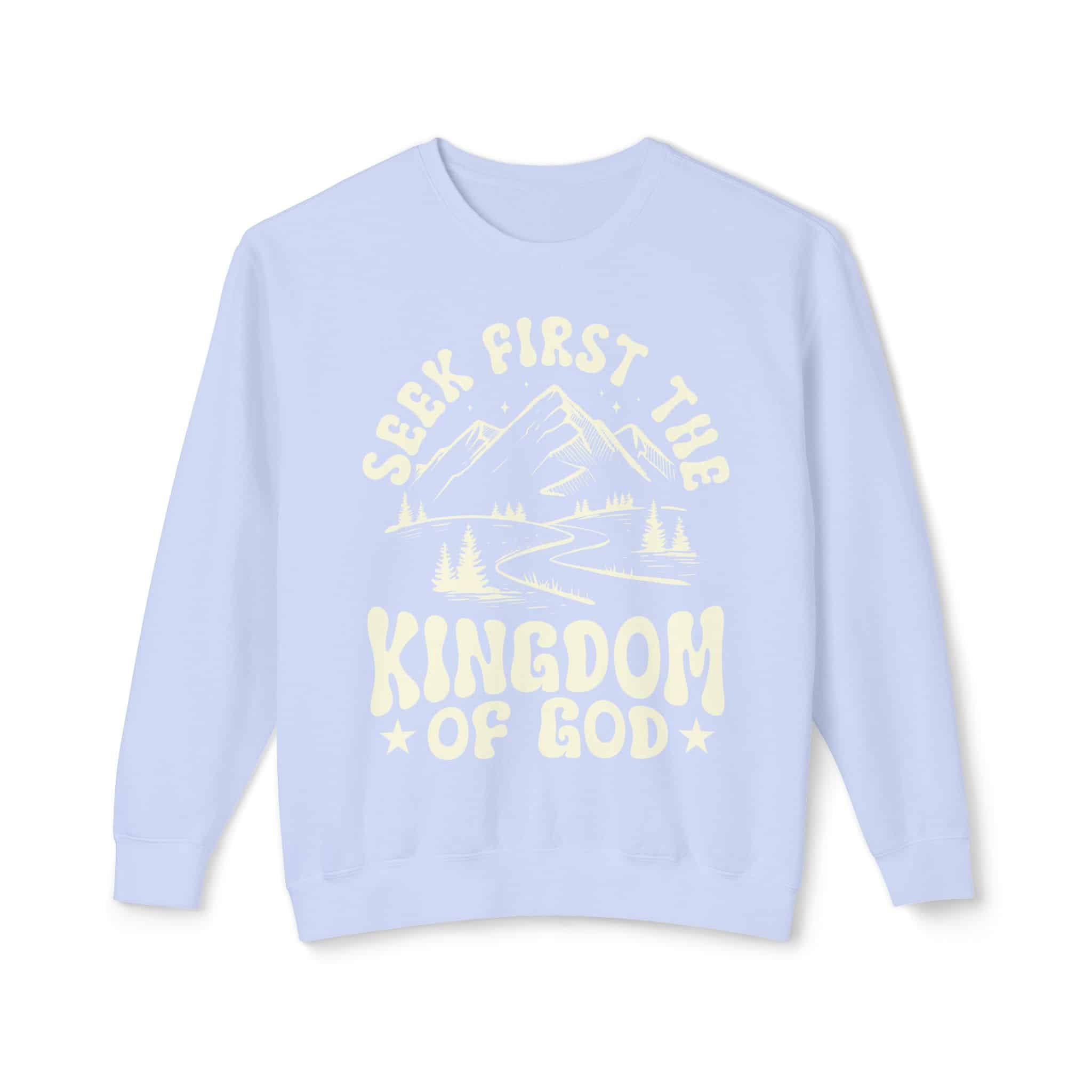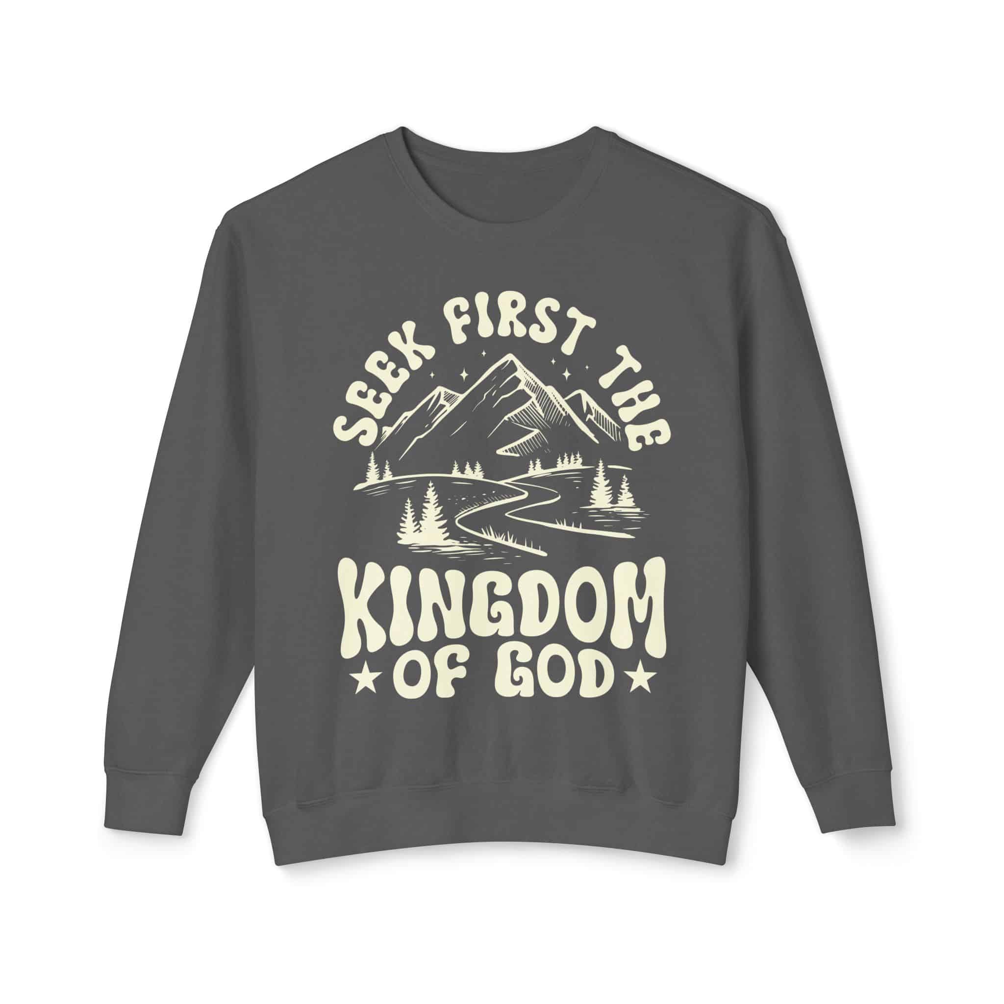 Inspired by Matthew 6:33, the Seek First the Kingdom of God ComfortFit Crewneck encourages you to keep your eyes on what matters most. Featuring a winding mountain path design, it’s a reminder that God guides every step of your journey and that the Kingdom is the ultimate destination. Wear it as a declaration of faith, focus, and purpose wherever life leads you.