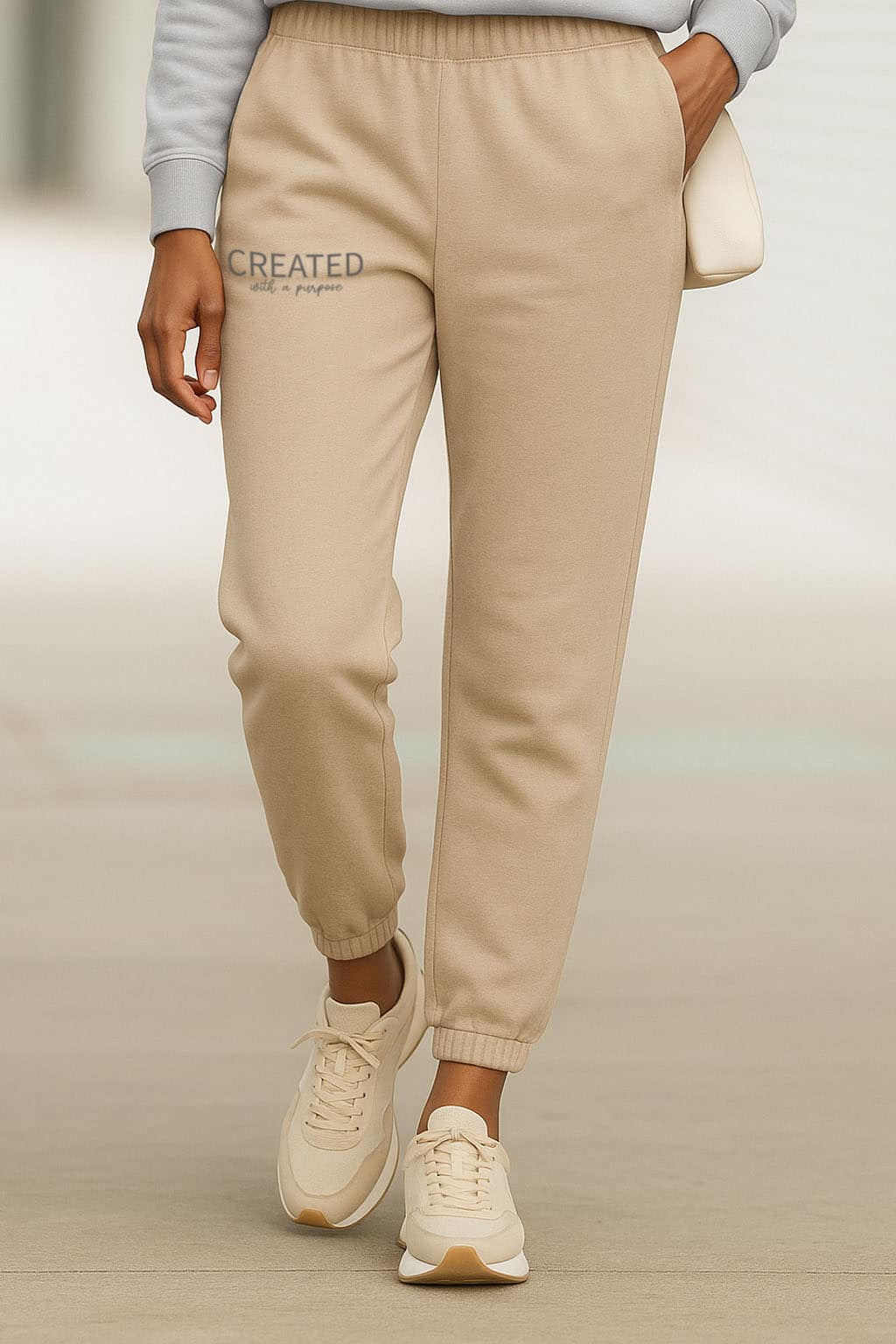 Made from a soft, mid-weight cotton blend, these relaxed-fit track pants offer comfort that inspires confidence. With a flattering, easy-to-move-in silhouette, ribbed cuffs, and convenient side pockets, they’re perfect for both quiet reflection and everyday hustle. Whether you’re relaxing at home, running errands, or meeting friends for Bible study, these pants remind you that wherever you go—you’re walking in purpose.