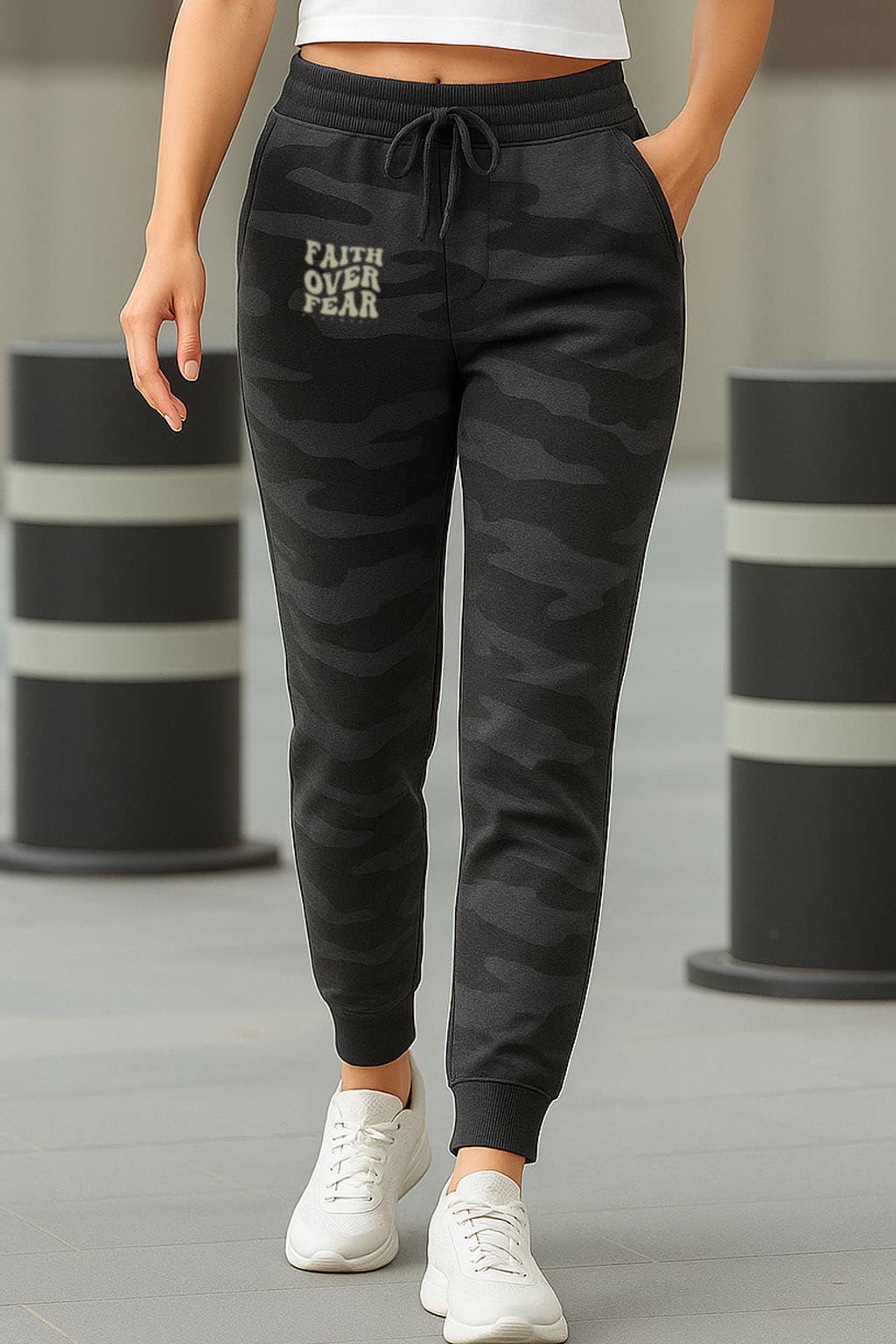 Crafted with a premium cotton-poly blend and a stylish camo wash, these sweatpants offer the perfect mix of comfort and fearless flair. The relaxed fit, soft interior, and rugged texture make them ideal for devotion time, active days, or cozy nights in. Modern, meaningful, and effortlessly wearable — they’re made for women who choose faith, not fear, in every moment.