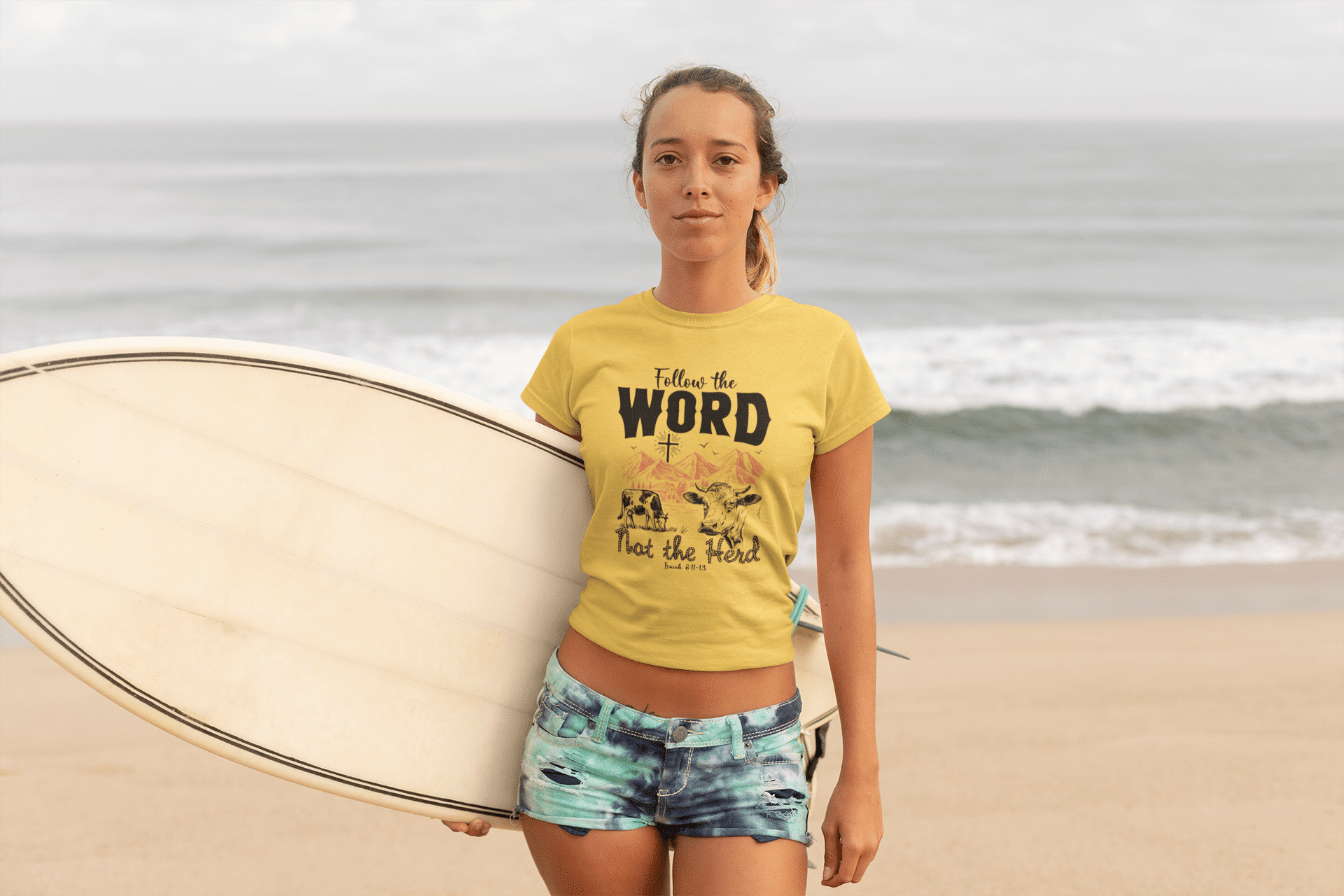 Faith-driven women, youth groups, summer retreats, worship nights, or casual wear that boldly proclaims — you follow the Word, not the herd.