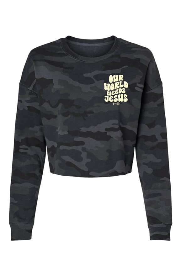 Share hope with every step you take in the Our World Needs Jesus Camo Cropped Crew—a joyful reminder that what our world needs most is the love and truth of Christ. With its retro-global design and bold message, this piece encourages believers to shine brighter, love deeper, and live sent, carrying the Good News into every place God leads.