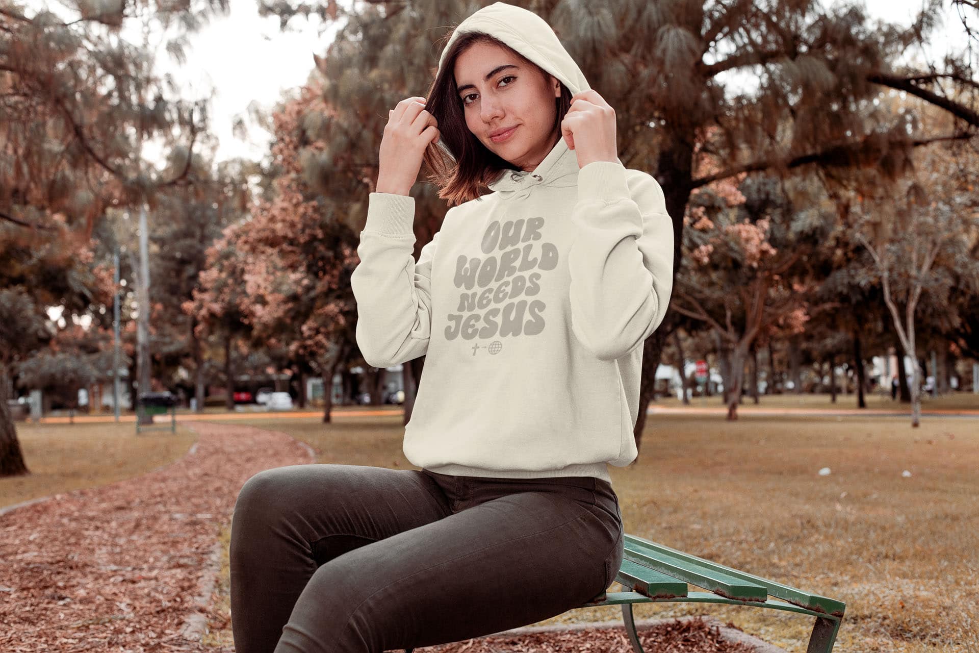 Shine your light and share His love with our Our World Needs Jesus Hip Height Hoodie — a bold yet joyful reminder that what the world truly needs is Jesus. With a retro-inspired design and a timeless message, this piece calls believers to live with bold faith and compassionate hearts, spreading hope to every corner of the earth. It’s not just an outfit; it’s a mission you can wear.