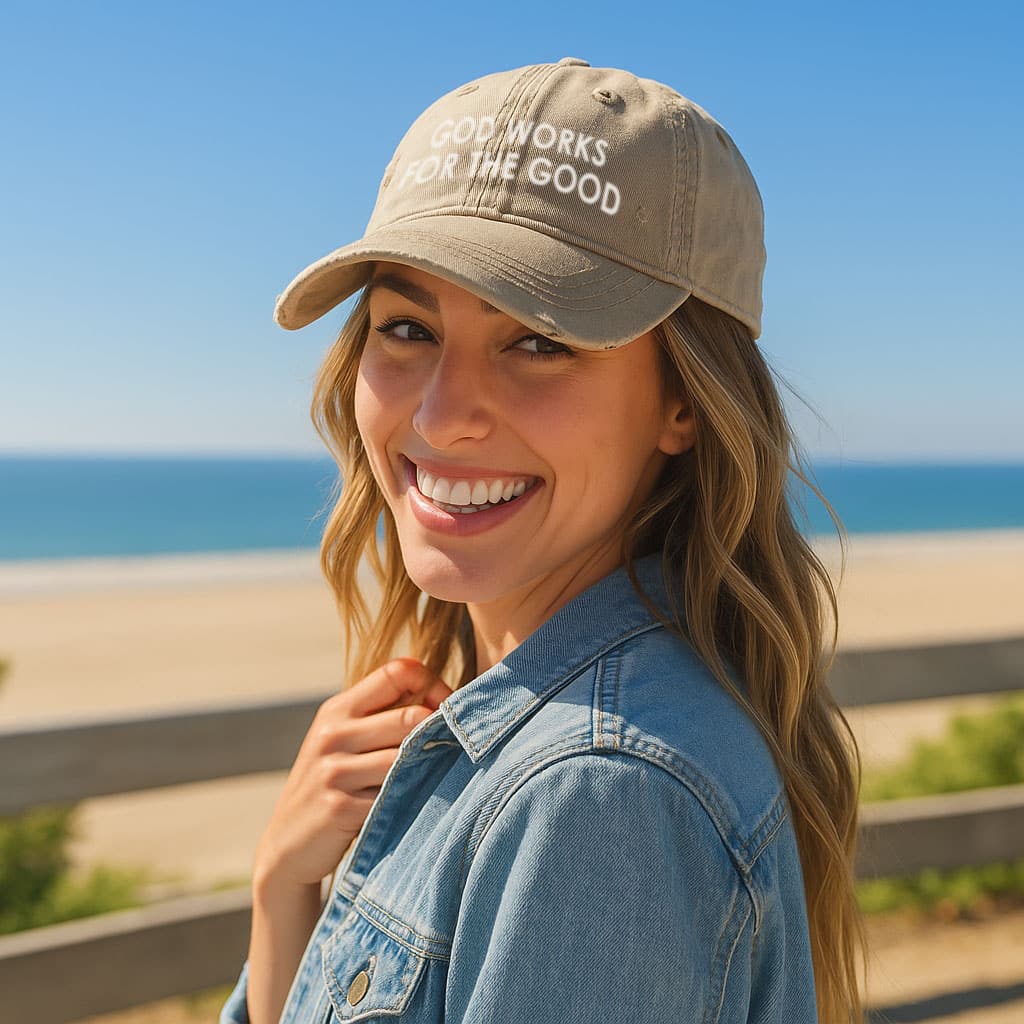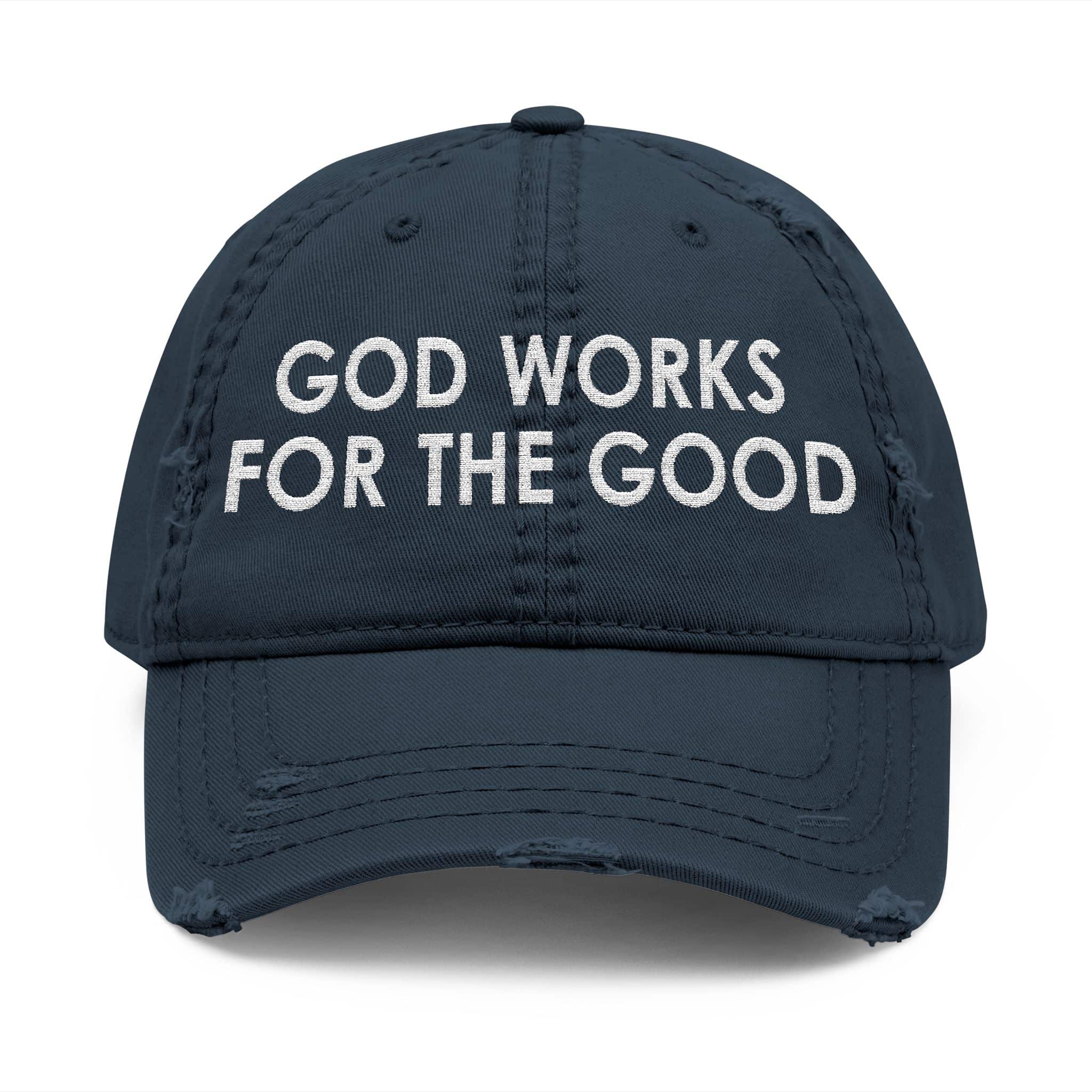 This encouraging “GOD WORKS FOR THE GOOD” design is a steady reminder that even when life feels uncertain, God is faithfully moving behind the scenes. Inspired by Romans 8:28, it speaks truth over every season—declaring that every joy, struggle, and waiting moment is being used for your good and His glory. Wear it as a quiet testimony of trust, peace, and confidence in God’s perfect plan. Crafted for comfort and everyday wear, this distressed dad hat features a soft crown, breathable eyelets, and a relaxed low-profile fit that feels effortless from morning devotion to daily routines. Its timeless, lived-in style makes it a meaningful companion for reflecting faith wherever life takes you.