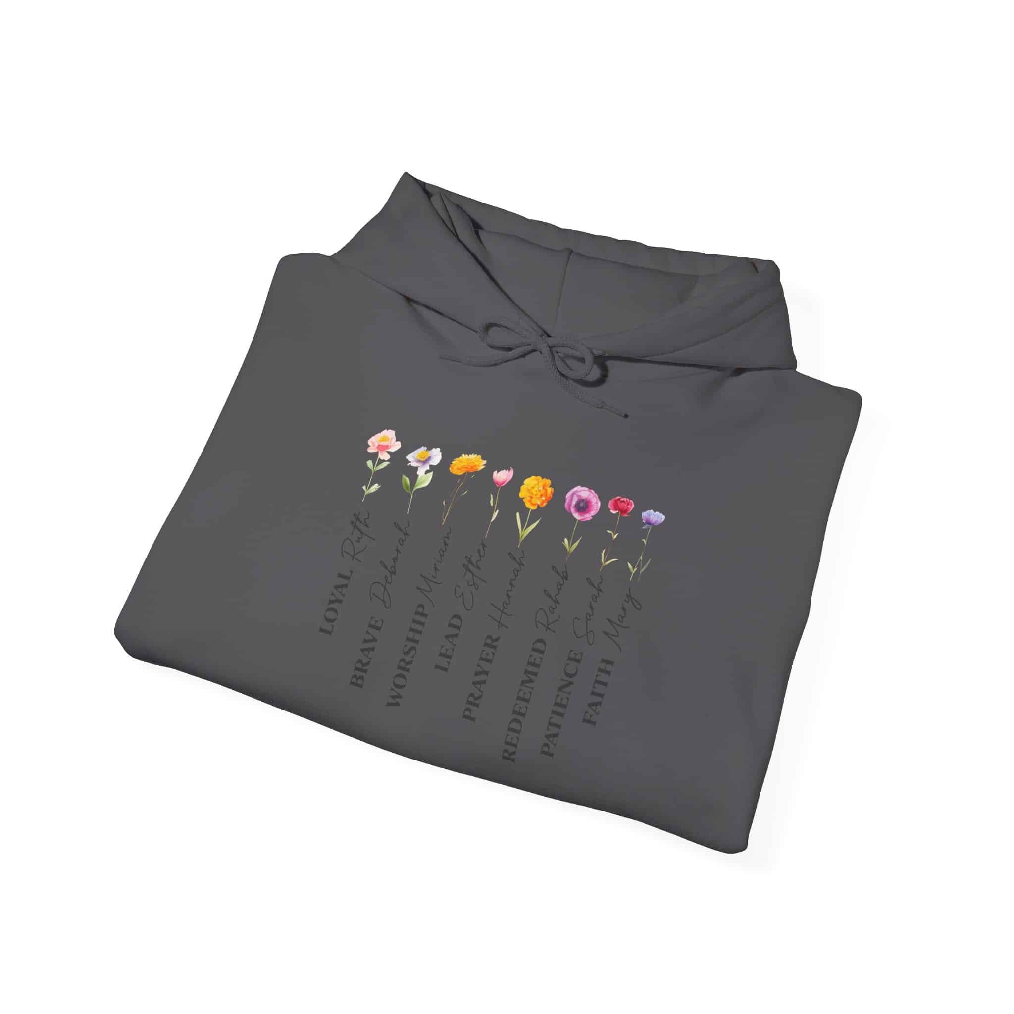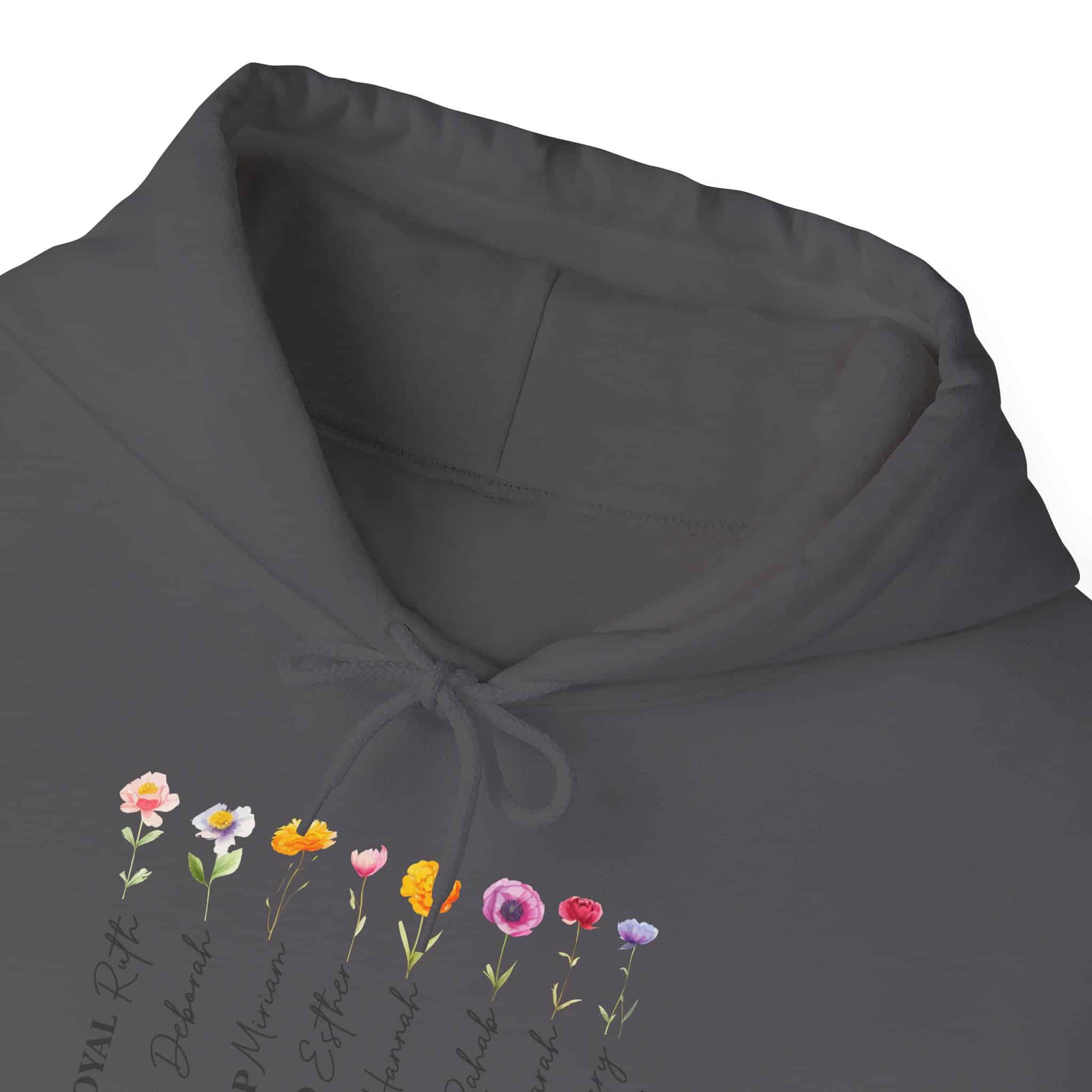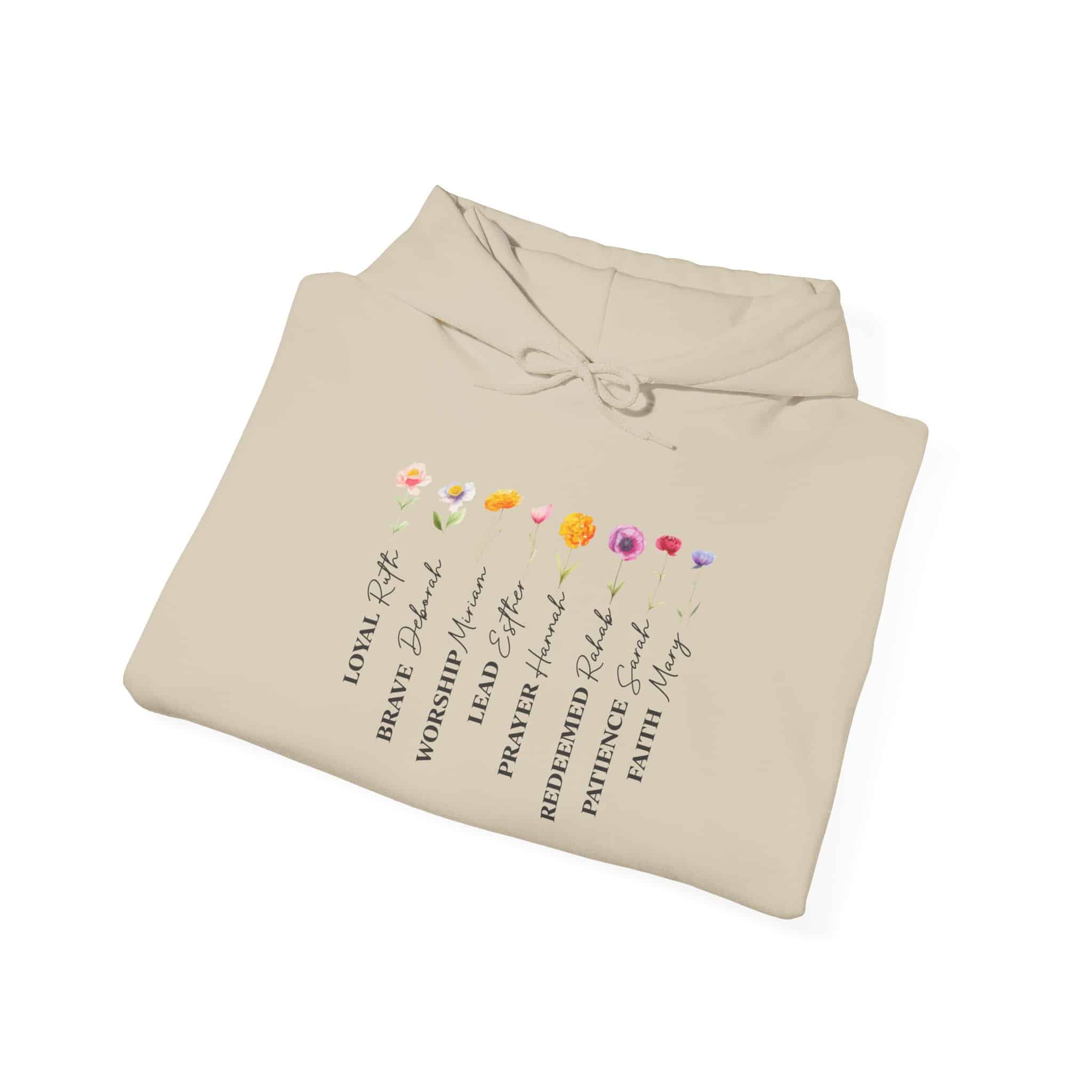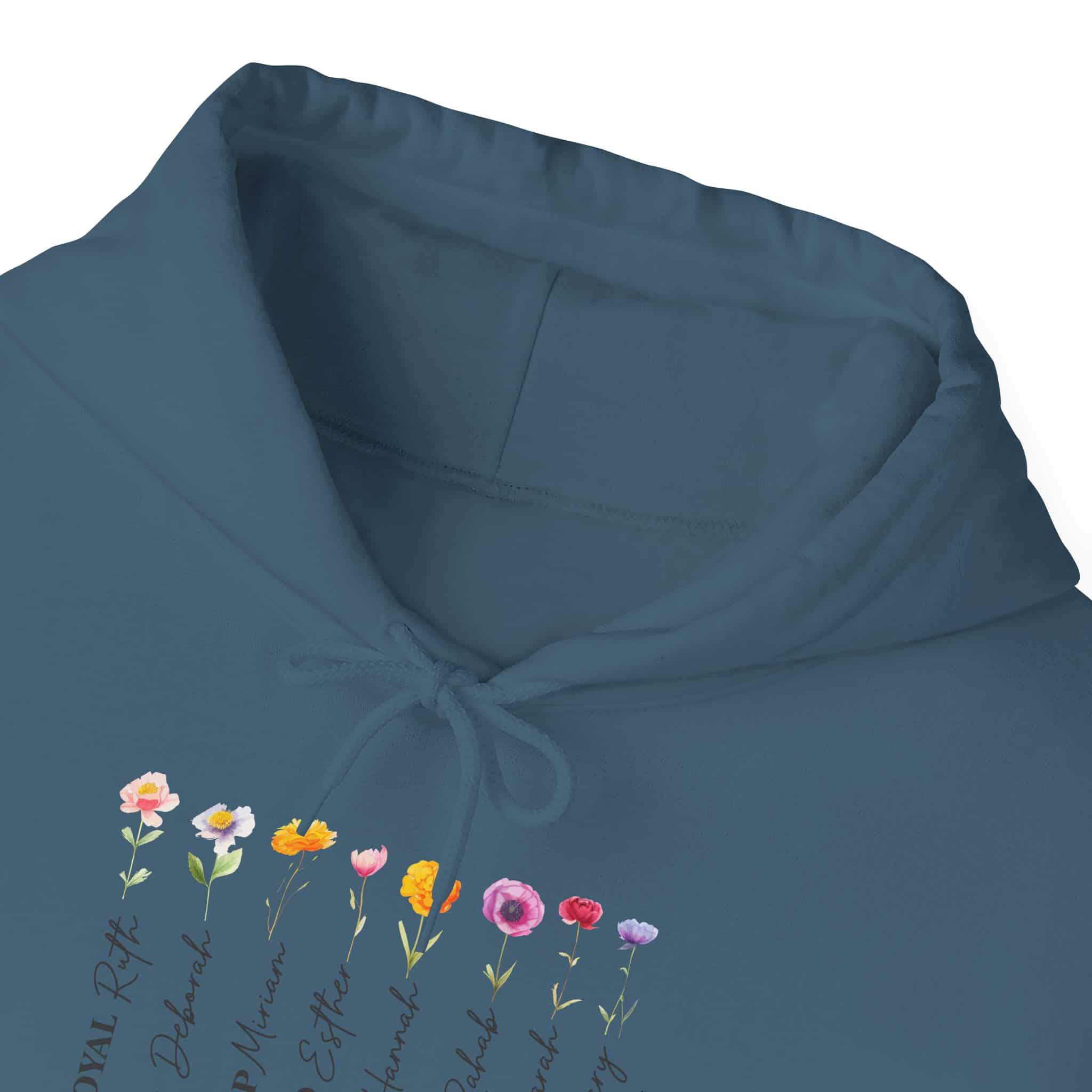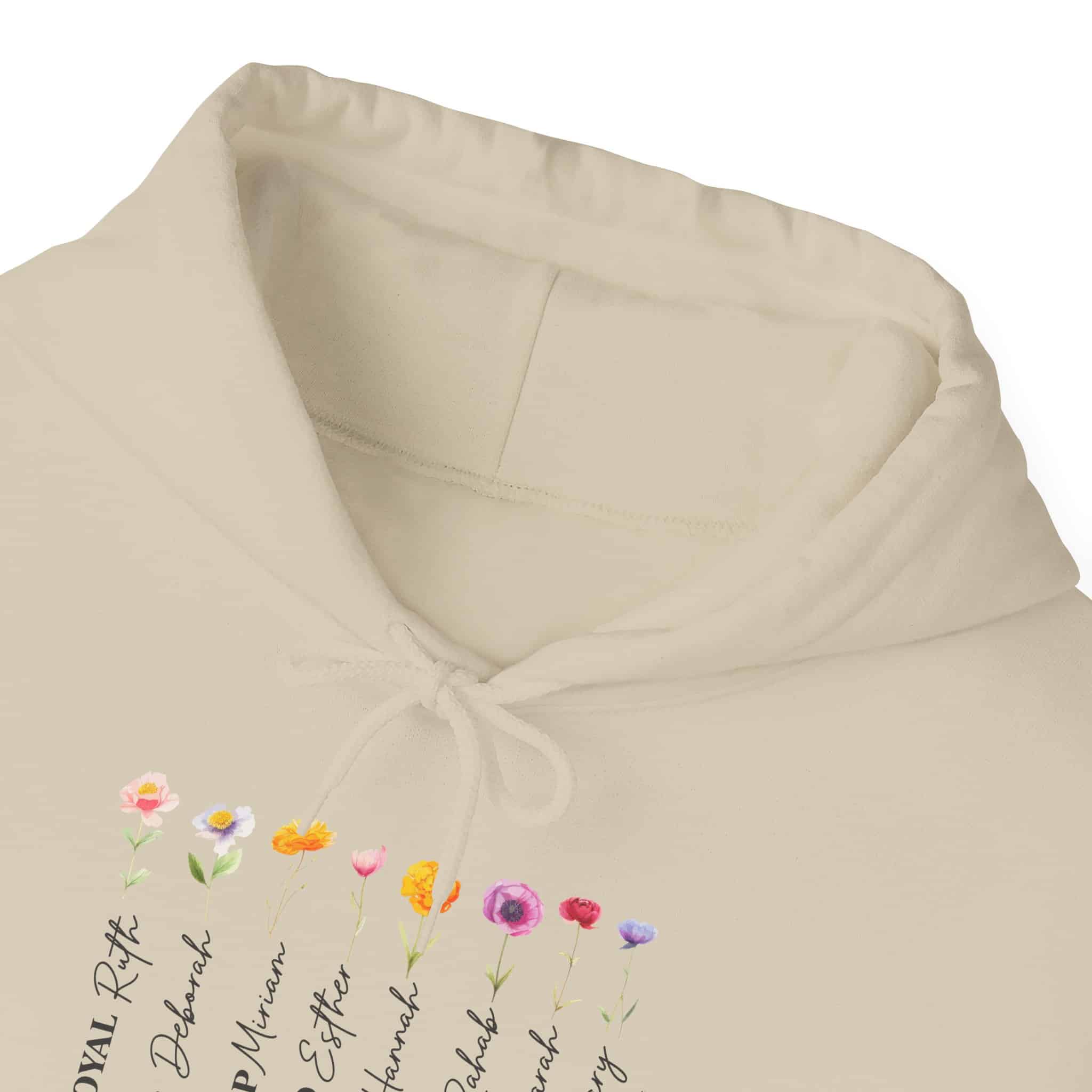 The Women of the Bible Hooded Sweatshirt is a gentle yet powerful reminder of the godly women who walked boldly in faith—and the same Spirit that lives within you today. Inspired by the lives of Ruth, Esther, Mary, Hannah, Sarah, and more, this floral design represents faith that grows deep roots, even in seasons of waiting, courage, and surrender.