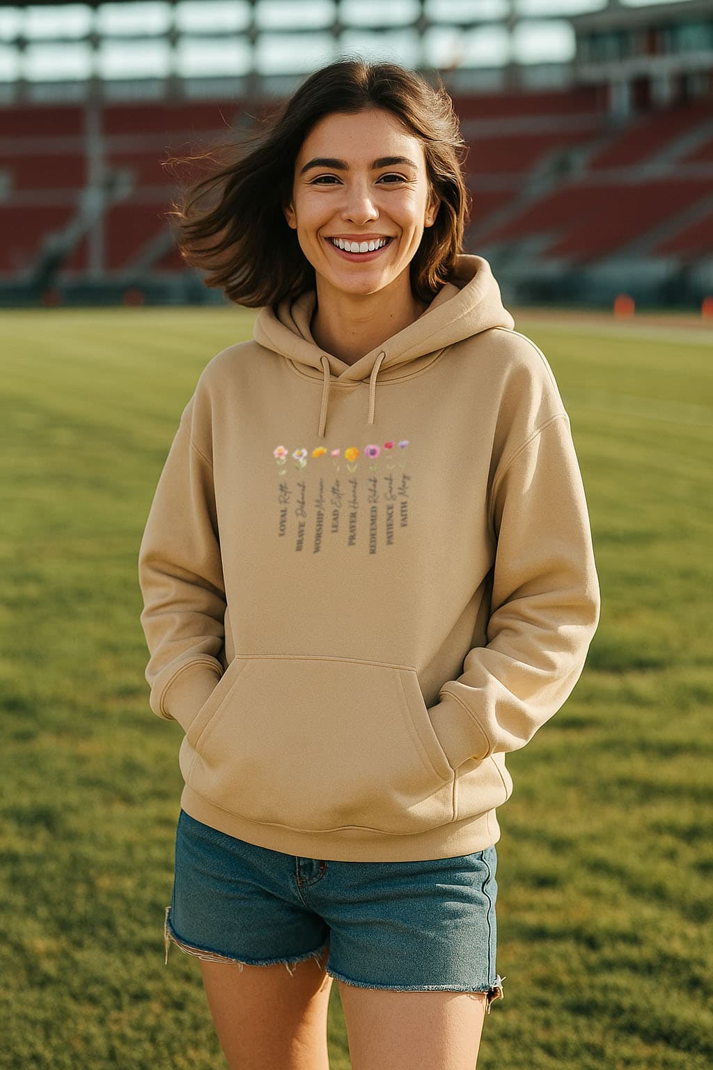 Thoughtfully created for everyday comfort, this unisex hooded sweatshirt wraps you in warmth with a relaxed, reassuring fit. Delicate florals paired with timeless symbolism make it easy to wear from quiet moments of prayer to casual days out—offering both physical comfort and spiritual encouragement wherever you go.