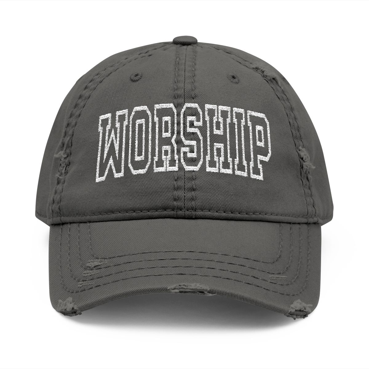 This bold “WORSHIP” design declares what your heart was made for—to glorify the One who is worthy. It’s a daily reminder that worship isn’t limited to a song or a Sunday service, but a lifestyle of praise, gratitude, and love expressed in everything you do. Wear it proudly as you walk, serve, sing, and live in a way that lifts His name high. Thoughtfully crafted for comfort and effortless style, this distressed dad hat features a relaxed, soft crown, breathable eyelets, and an easy adjustable fit. Its modern, low-profile design transitions seamlessly from morning devotion to casual outings, making it a meaningful accessory for anyone who desires to live a life of worship.